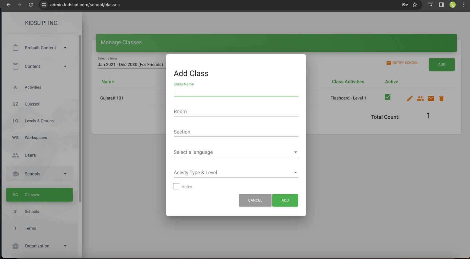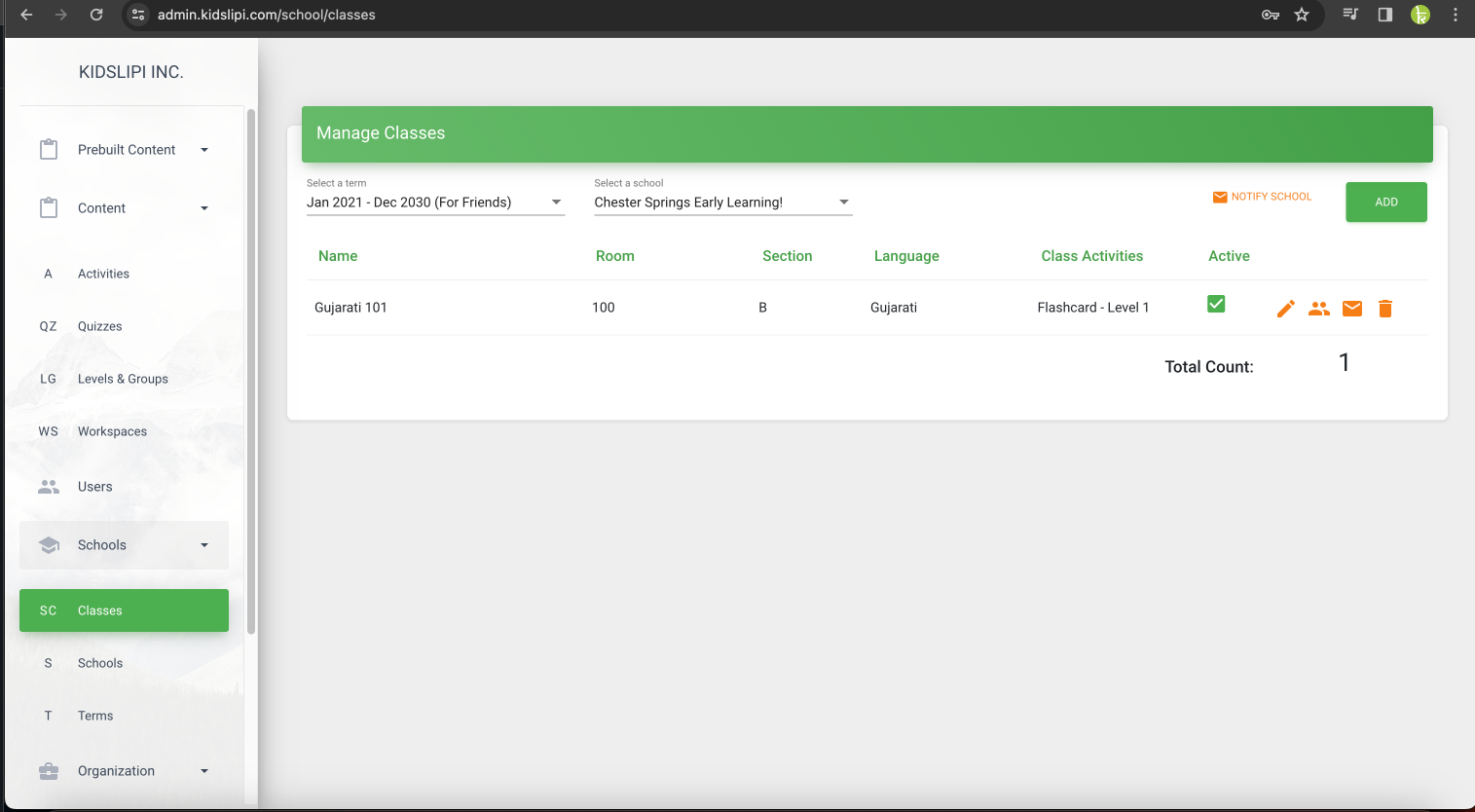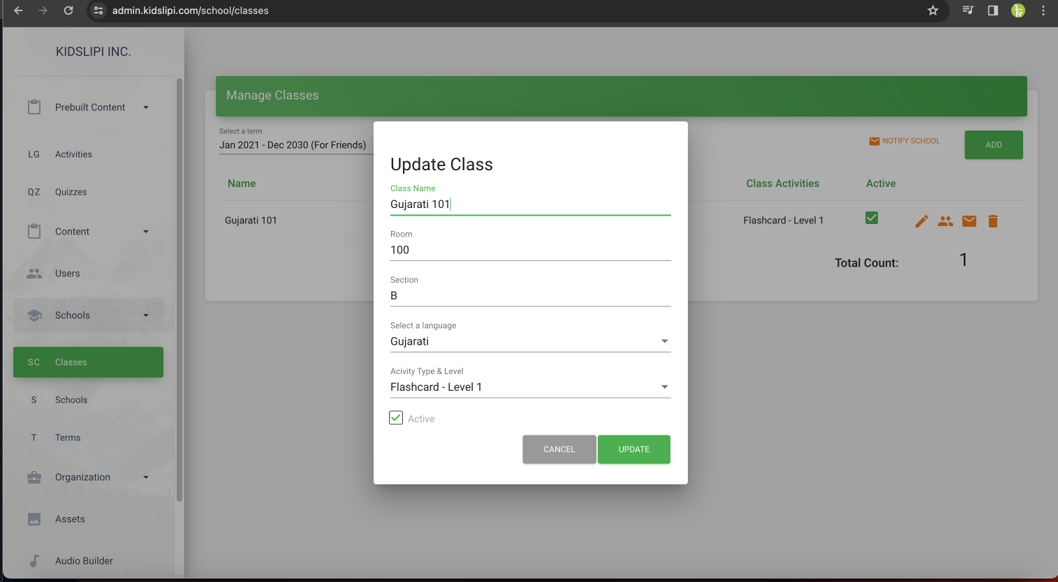 To edit an existing class in KidsLipi, follow these steps: